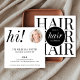 Minimalist hair business cards with photo - featuring a modern black and white aesthetic, this hairstylist business card design includes space for your logo or business name. Stand out with these elegant and chic business cards for hair stylists, hair salons, hair boutiques and more. With fully editable text and colours you can make your fully custom hairdresser photo business cards.