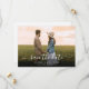 Elegant modern calligraphy script overlay one photo wedding save the date announcement card. Chic minimalist design template feature 1 photo and elegant cursive hand lettering typography script „Save the Date” text overlay. At tha backing your save the date pre-made message. If you need help or matching items, please contact me.