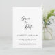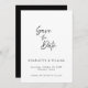 A minimalist script wedding save the date card. This save the date card features an elegant script text with a minimal black and white theme. Customise the text with all the details for your special day.