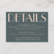 Minimalist Elegant Teal and Blush Art Deco Wedding Invitation Details Enclosure Card