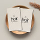 Minimal fully customisable business card template with black scissors icon/ bold hair text and printed paper textured background. Elegant and simple design. Perfect for beauty salon, hair stylist, hairdresser.