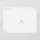 Minimalist Wedding postcard for Save-the-Date invitations... On front-side: a small faux gold heart with couple names on a white and clear background... back-side: personalised lines of text... for a memorable event