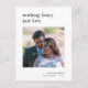 Simple, yet stylish and fully customisable, to let your friends know of your elopement along with a photo memento from your day, with this minimal design with Nothing Fancy Just Love on the front in black, beneath which add your favourite photo from your wedding, and personalise your names, and date and location of your ceremony. On the back, easily personalise with your announcement message. Text styles and colours as well as background colours can be changed if you wish via the Customise Further option.