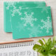 Lovely, modern and trendy festive pattern with white snowflakes on an emerald background. It features an emerald background and is adorned with white snowflake pattern that cover its surface. The snowflakes are detailed with fine lines, creating an intricate lace-like effect. The overall style is charming and joyful, with a clear holiday theme. Perfect Christmas envelope for Christmas cards and Christmas party invitations