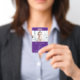 Minimalist Employee Photo ID Name Logo Purple. A fully customisable photo ID badge which is easy to personalise with your photo, logo and text. Swap in your photo (of landscape orientation) with the sample image, and company logo, and easily personalise the text to your own details. You can also add your return address on the back in case your card gets lost or delete this text if you so wish. The font styles and colour can also be changed via the Customise Further option, as well as the background colour.