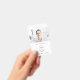 Minimalist Employee Photo ID Name Logo White A fully customisable photo ID badge which is easy to personalise with your photo, logo and text. Swap in your photo (of landscape orientation) with the sample image, and company logo, and easily personalise the text to your own details. You can also add your return address on the back in case your card gets lost or delete this text if you so wish. The font styles and colour can also be changed via the Customise Further option, as well as the background colour.