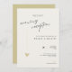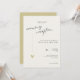 This minimal and elegant evening reception wedding invitation is perfect for a modern wedding reception. Design features an handwritten font and modern minimalist design with a golden heart. You can change the names, wedding location and date, and other details, click «Personalize».
