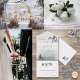 Elements: Watercolor forest and mountain scenes with ethereal mist. Sophisticated serif fonts with touches of elegant script and a minimalist feel. Colours: green, white, sage, blue, dusty blue, grey, slate, white, mist. Themes: modern, minimalist, mountains, outdoor wedding, country chic, rustic, woodsy, outdoorsy, forest, woodland, nature, hiking, rocky mountains, sierra nevadas, blue ridge mountains, smokey mountains. Collection: Minimalist Evergreen Mountain Wedding Collection. Product Type: Program