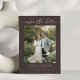 This save the date card features an engagement photo framed by elegant handwritten script on a rich mocha brown background. The clean, modern layout highlights your photo while keeping the announcement timeless and romantic. The back includes a QR code so guests can easily visit your wedding website for details and celebration information. Personalize the names, date, and location to share your wedding plans with friends and family.