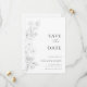 Modern Minimalist Black Floral Wedding save the date card featuring delicate black botanical line art for a timeless, elegant look. This wedding date announcement includes a clean design with your names and space to put details on the date and location. Perfect for couples wanting a modern, classy, minimalist wedding stationery with a refined luxury feel. Ideal for black and white weddings, contemporary weddings, and elegant floral themes.