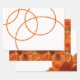 Minimalist white and orange wrapping paper sheets featuring an abstract pattern of orange circles, a floral surface pattern with an orange rose and another image with the same orange rose flower photography.