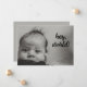This bold and simple baby announcement features a full-bleed black and white newborn photo with playful script that reads "hey, world!" The modern layout lets your baby's expression shine, making it perfect for new parents who love a clean, minimalist style with personality. Customise with name and birthdate details.