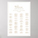 This minimalist gold alphabetical seating chart poster is perfect for a simple wedding. This sign can be used to organise your guests alphabetically or by table number by changing the names of the headings. The modern romantic design features classic gold and white typography paired with a rustic yet elegant calligraphy with vintage hand lettered style. Customisable in any colour. Keep the design simple and elegant, as is, or personalise it by adding your own graphics and artwork. This wedding poster includes enough room for up to about 120 guests. Make room for more (or less) guests by clicking the "customise" button and decrease or increase the size of the font. In addition to the placement of each guest, personalise this sign with the names of the bride and groom and the wedding date.