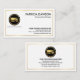 An all white cover is encapsulated by a faux gold rectangular frame. Towards the top lies your prestigious name and the job title with a gold truck logo you can use on the left. Just below this logo is a slogan option for you to publicise your services. ; You can change the caption remarks to the slogan to suit your own publicity needs. The business name and its contact details are near the lower right corner of the card.