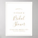 This minimalist gold bridal shower welcome poster is perfect for a simple wedding shower. The modern romantic design features classic gold and white typography paired with a rustic yet elegant calligraphy with vintage hand lettered style. Customisable in any colour. Keep the design simple and elegant, as is, or personalise it by adding your own graphics and artwork. Customise the poster with the name of the bride, days until the wedding, shower date and optional social media hashtag for photos.