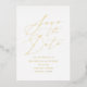 Announce your upcoming wedding in style with our Minimalist Calligraphy photo save the dates. The elegant save the date cards feature the words "Save the Date" in a gold foil script with your names, wedding date, & location featured below. The back of the save the dates features your favourite engagement photo.