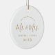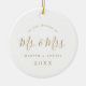 This minimalist gold first Christmas wedding photo ceramic ornament is the perfect simple Christmas tree decoration. The design features classic gold and white typography paired with a rustic yet elegant script font with hand lettered style. This keepsake ornament reads "our first Christmas as mr and mrs". Personalize the front with your names and the year. Personalize the back with your favorite wedding photo.