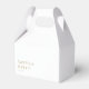 This minimalist gold modern art deco wedding gable favour box presents both an elegant, black tie formal, and a casual, simple design for a traditional or more rustic marriage celebration. The plain, neutral gold and white layout with unique, classic typography alludes to minimal boho or classy retro making it a perfect design for any event theme.
