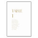 This minimalist gold modern art deco wedding table number guests presents both an elegant, black tie formal, and a casual, simple design for a traditional or more rustic marriage celebration. The plain, neutral gold and white layout with unique, classic typography alludes to minimal boho or classy retro making it a perfect design for any event theme.