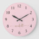 Minimalist Gold Monogram Signature Script Blush Large Clock