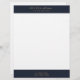 Professional letterhead featuring personalised monogram name in minimalist gold colour typography on a navy blue background.