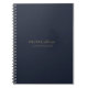 Professional notebook featuring personalised monogram name in minimalist gold colour typography on a navy blue background.