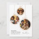 An elegant and modern Christmas card designed for your family photos. Features three minimalist gold ornaments where you can easily insert your favorite pictures. Perfect for sending a personal and stylish holiday greeting.