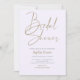 The focal point of the invitation is the stunning gold script that gracefully announces "Bridal Shower." The elegant curvature of the letters adds a touch of romance and charm, creating a captivating visual focal point. The remaining text, in both gold and silver, complements the central script, creating a harmonious balance of metallic accents.