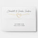 Enhance your wedding invitations with our simple, classic 5x7 white envelopes. Featuring a return address, modern calligraphy script, and a romantic gold rope heart, these elegant minimalist envelopes add a perfect touch of sophistication and love to your special day.
