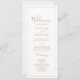 This minimalist gold wedding program is perfect for a simple wedding. The modern romantic design features classic gold and white typography paired with a rustic yet elegant calligraphy with vintage hand lettered style. Customisable in any colour. Keep the design simple and elegant, as is, or personalise it by adding your own graphics and artwork. Include the name of the bride and groom, the wedding date and location, thank you message, order of service, bridal party and an optional "in loving memory" memorial.