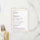 A modern white and gold typography simple gold borders elegant wedding menu card.