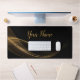 A Desk Mat your desktop with a high-quality print from a High Definition graphic. This large mouse pad provides a comfortable surface for your work, laptop, keyboard and a smooth surface for your mouse. It transforms your workbench with a stylish and elegant touch. You can further enhance it with a name or text of your choosing to make it truly stand out. Perfectly suited for all creators, artists, writers and anyone inspired by the soothing black and gold environment.
