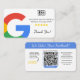 This is a clean minimalist google review business card for small businesses or anyone that has a google business profile. On the front side of the card you have the iconic Google G logo positioned in the bottom left of the card. This logo can be moved to your liking! You also have your logo, a personalised message or call to action to leave you a review on Google. You have an image depicting 5 stars which serves as a cue to let your customers know that a 5 star review is expected. Of course you must deliver on your product quality and service for this to happen. Lastly, there is a thank you message at the bottom. On the back side of the card you have a personal message at the top, simple instructions on what to do, your QR code in the centre and your business information to the right of the code. This card is 100% customisable, you can change the images, the text, the fonts and the colours. You could also just plug in your info and add your logo images and run with it. If you need any help with this template please send me a message and I will gladly assist you. Thanks! Sandy