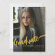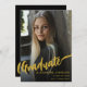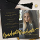 Celebrate your daughter’s college, university or high school graduation with this stunning minimalist stylish gold and black graduate photo graduation announcement card. Featuring elegant gold script calligraphy and graduate photo template, this design captures the excitement of new beginnings and joyful celebration. Personalise it with a cherished photo of your graduate using the easy-to-use photo template, and highlight event details in stunning typography. Designed by artist Catherine Sweetman, this unique invitation beautifully combines elegance with the thrill of your daughter’s achievement, making it the ideal way to gather loved ones and mark this special milestone.