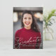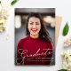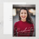 Modern minimalist elegant "graduate" script overlay in white. Customize with graduate's name, school, and graduation year. Back side has room for extra details such as future plans, etc.