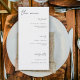 Perfect for place settings, each guest can enjoy a beautifully presented overview of the evening’s meal — from starters to mains and desserts — all styled with understated elegance.
