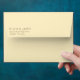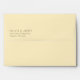 This envelope features a minimalist design with centred text on a plain background, creating an elegant and sophisticated look. The muted grayish-brown colour palette contrasts subtly against the white backdrop, emphasising clarity and simplicity. Utilising clean, modern sans-serif fonts, the typography is bold yet understated, making it ideal for formal or personal correspondence. The layout focuses entirely on typographic hierarchy, ensuring that the names and address stand out without any additional graphics or embellishments. Perfect for those who appreciate a contemporary aesthetic in their stationery.