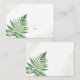 Minimalist Green Fern Wedding. Simple and trendy botanical illustration wedding place card with watercolor stains.