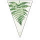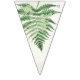 Minimalist Green Fern Wedding. Simple and trendy botanical illustration wedding decoration flags with ferns and watercolor stains.