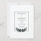 Embrace the beauty of simplicity with this clean and modern botanical design. Set against a pure white background with a slender, high-contrast black rectangular border, the focus remains entirely on the lush, dark green leafy wreath at the base. Tucked within the foliage are tiny, delicate white blossoms that add a touch of organic charm and soft romance. This minimalist aesthetic perfectly captures a Nordic-inspired vibe, offering a sophisticated and timeless look for couples who value natural elegance and modern lines. This is a wedding invitation designed for minimalist ceremonies, modern garden weddings, or serene woodland-themed celebrations.