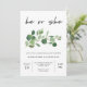 These modern, minimalist gender reveal party invitations feature trendy green watercolor leaves and elegant typography.
