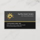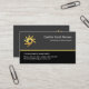 A dark grey and black layered cover is demarcated by a faux gold line. At the top you have a global logo, the logo is a gold rotating tire rim. In the opposite direction rest your prestigious name and job title. Near the base, inside the black layer is the business name and its contact details.