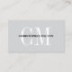 Elegant customizable business card template with light grey background and bold white monogram.