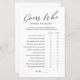 Entertain your baby shower guests with this 'Guess Who?' game, featuring a minimalist design with elegant black calligraphy.