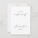 This wedding place card features a pre-printed guest name, with the text appearing on both sides of the place card once the card is folded in half. (The printed place card will arrive flat and so will need folding in half before use. The size before folding is approximately 5" height by 3.5" width, intended to be folded so approximately 2.5" by 3.5" after folding). Please use the online personalization template to personalize the place card before adding it to the cart. (Please repeat the personalization process for each card you wish to purchase, adding the card to the cart individually each time). A neatly-personalized place card for a stylish wedding or other special occasion.