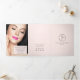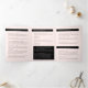 This chic try-fold brochure design features a minimalist line art drawing of a hand holding a set of lashes for a unique and eye-catching logo for your beauty business or personal brand. The simple black and pink colour theme is classic and timeless. Update the customisable text with your name or business name, and personalise the details throughout the brochure for your own usage. Created for eyelash extensions salons, makeup artists, beauty specialists and more - these 5x7 brochures are perfect to display your price lists and menu of services. A great marketing piece to hand out to potential clients to quickly introduce your business. Please contact the designer for help with special typesetting or layout variations. Art and design © 1201AM Design Studio | www.1201am.com
