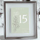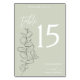 A simple and timeless table number featuring hand-drawn eucalyptus sprigs on a light sage green background. Elegant script and classic serif fonts combine to highlight the table number and includes aswell couple’s names and wedding date. Perfect for nature-inspired or minimalist weddings with a romantic touch. Same design on both back and front.
