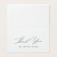 A simple wedding thank you card featuring the phrase "thank you" in dark grey hand lettered font, and your names and wedding date in serif font. The card is blank inside for your own hand written message.