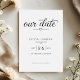 Announce your special day with this elegant wedding save the date card. This design features a clean and modern layout with refined typography. The phrase “Save our date” appears in elegant script, accented by a subtle heart detail for a soft romantic touch.