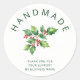 Minimalist Holly Branches Handmade Business Support Classic Round Stickers.